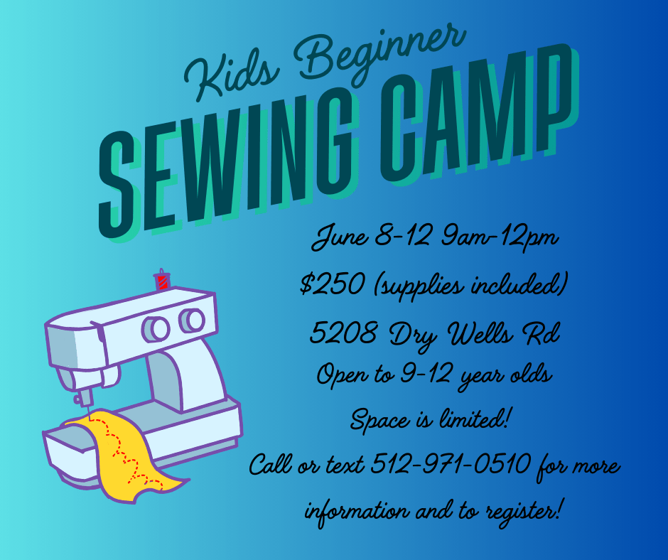 Beginner Sewing Camp is June 8-12, 2026.
