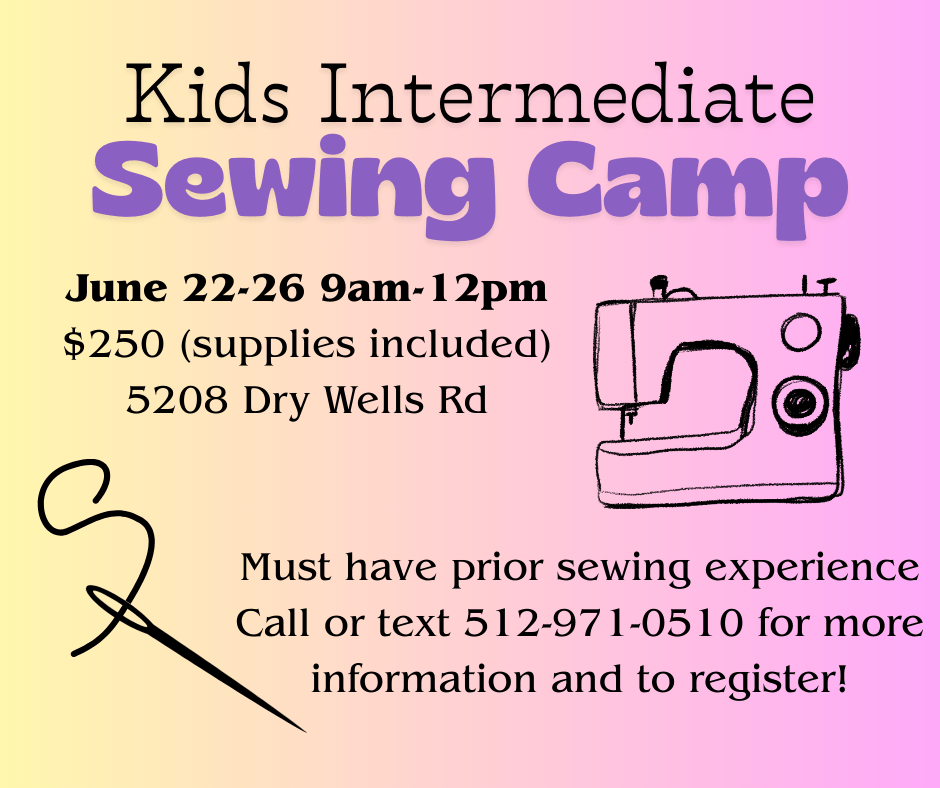 Intermediate Sewing Camp is June 22-26, 2026.