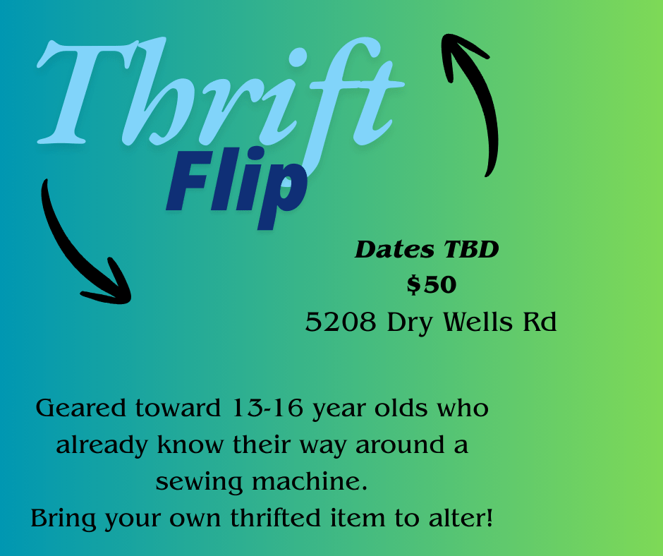 Thrift Flip will be a Saturday morning dedicated to altering your thrift finds! Best for teens who are interested in fashion and already know how to use a sewing machine.